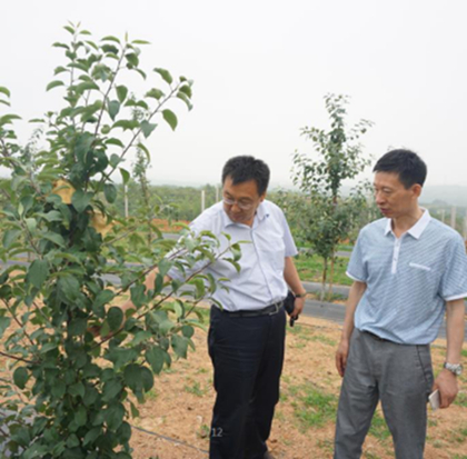 2015年6月29日,中国农科院果树所所长刘凤之和中国农科院果树所脱毒中心教授张尊平抵达栖霞,对中国农科院果树所在山东的科技示范基地——中惠苗木基地进行实地考察。